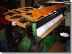 当社の印刷はゴム、樹脂製の印板にポンプで循環させた水性インクをインクローラーに介して付着させ、下を通るダンボールシートに押し付けて行う「フレキソ印刷」